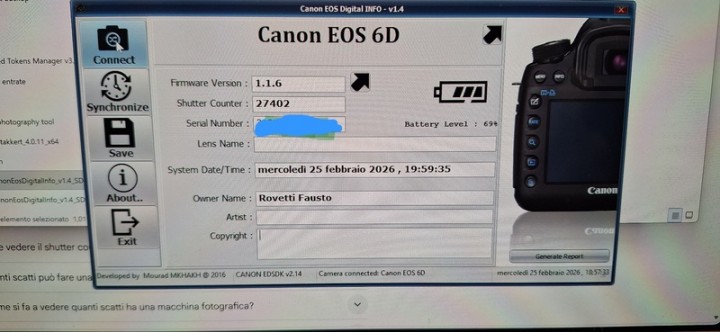 Vendo Canon 6d modificata da Astrohobby con inserimento filtro Baader, il numero di scatti è poco superiore a 27000.